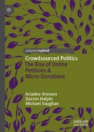 Crowdsourced Political Engagement I led an Australian Research Council (ARC) Discovery Project, with Darren Halpin and Michael Vaughan. It focused on the emergence and impact of citizen-led online petitioning and crowdfunding campaigns. We published a book in late 2022 Crowdsourced politics: the rise of online petitions and micro-donations for Palgrave-Springer, and two comparative articles via a collaboration with German scholars at the Weizenbaum Institute. Serrin Rutledge-Prior and I also published a report on the future of government petition platforms in 2023.